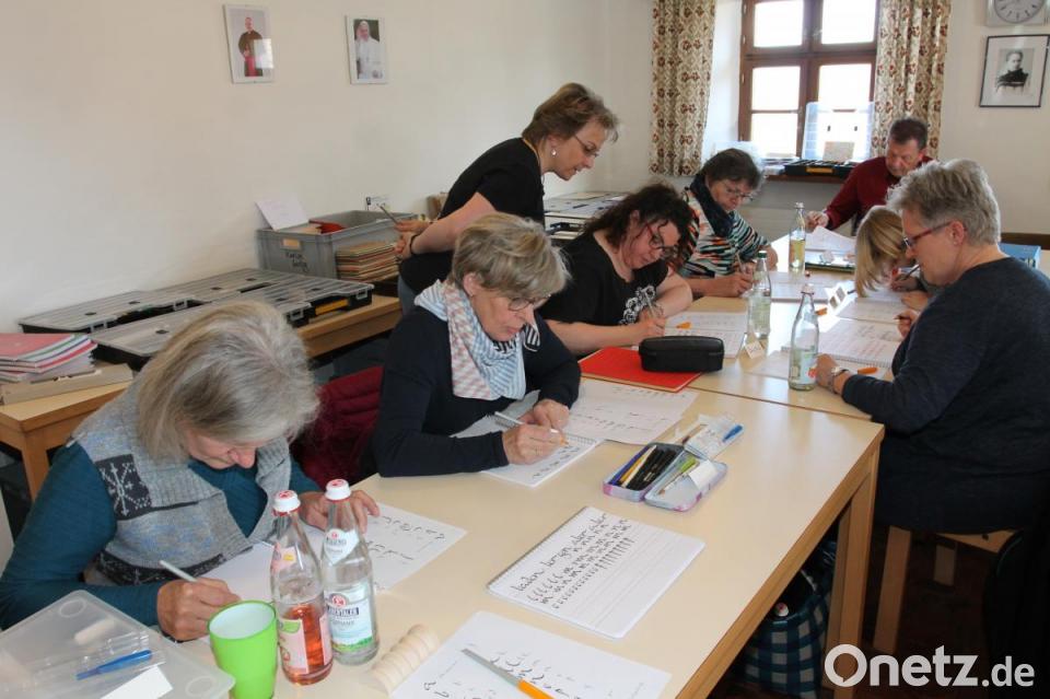 Eigentlich hatte sie die Schrift für sich selbst entwickelt. „Dann bin ich aber immer wieder angesprochen worden, sie weiterzugeben.“ Dass Paulus das gerne macht, zeigte sie den Teilnehmern, die unter anderem auch aus Irchenrieth, Moosbach, Waidhaus und Waldthurn gekommen waren, als sie immer wieder Tipps und Hilfestellungen gab und sich über den Eifer ihrer „Schüler“ freute. „Alle waren mit großer Begeisterung bei der Sache“, dankte Organisatorin Marita Osgyan der Dozentin und freute sich schon auf den nächsten Kurs.