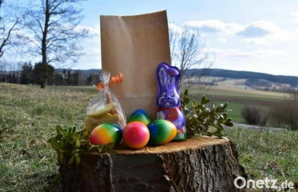 Die jungen Leute haben kleine Ostertüten mit verschiedenen Leckereien – gefärbte Eier, Osterplätzchen und ein Schokohase – gepackt. Die Tüten werden am Ostersonntag und am Ostermontag jeweils zwischen 9.30 und 11 Uhr oder alternativ zu den Abholzeiten für das Mittagessen für fünf Euro im "Berggasthof" der Familie Schaller verkauft.
