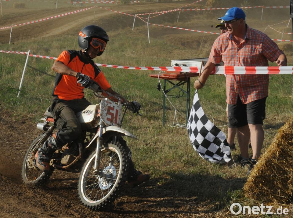 Drei Stunden zog sich das Mofa-Cross hin. Um 15 Uhr wurde gestartet, und um 18 Uhr stand Bürgermeister Winfried Franz im Zielbereich und signalisierte mit der schwarz-weiß karierten Zielflagge das Ende des Rennens. Natürlich kommt bei einem derartigen Wettbewerb keiner mehr an modernster Technik vorbei, sonst würde die Auswertung Stunden dauern. Jedem Mofa war ein Transponder zugeordnet, der über eine Induktionsschleife im Zielbereich dem Zeitnahmecomputer "flüsterte", wer gerade die Ziellinie überquerte. Kaum war der letzte Fahrer angekommen, spuckte der Drucker schon die Ergebnisliste aus.