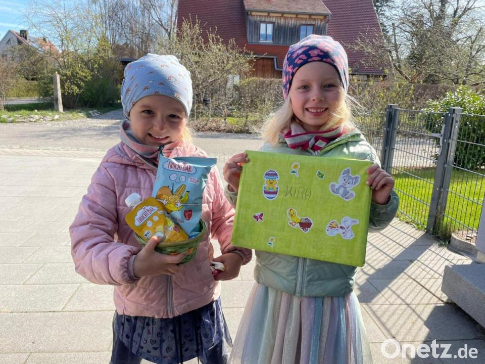 Kinder aus der Ukraine freuen sich über das Osternest, das Mitglieder des Helferkreises Neukirchen für sie vorbereitet haben.