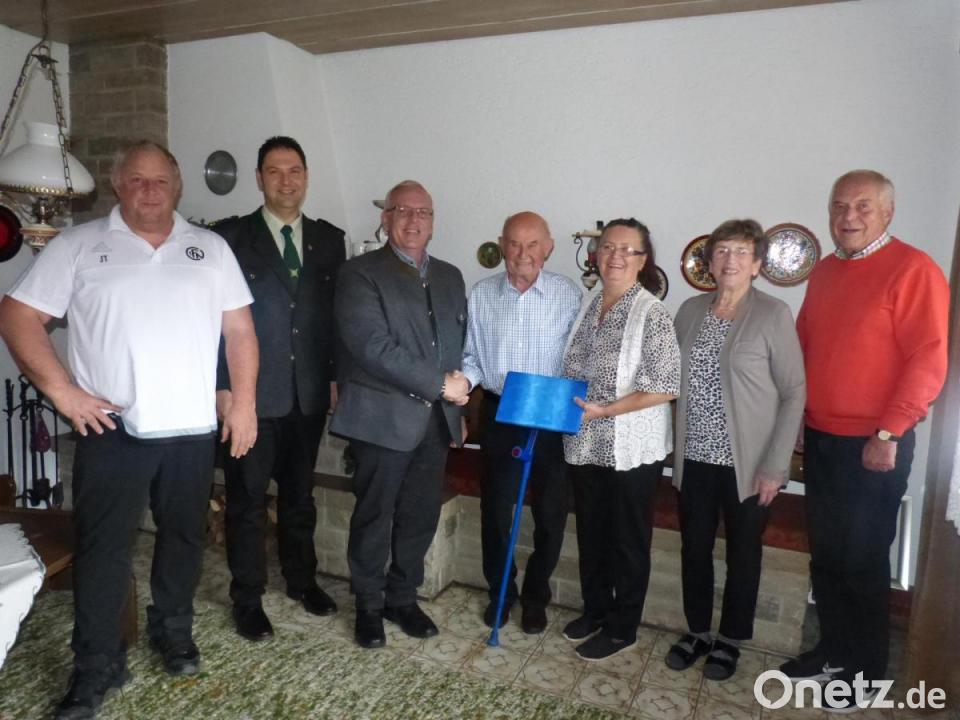 Seit zwei Jahren etwas gehandicapt, ist der mit dem Rollator täglich unterwegs und lässt sich den Einkauf für die Familie nicht nehmen. Diese Kontakte mit den Bekannten bei einem kleinen Plausch wünschen alle Gratulanten noch für lange Zeit.
