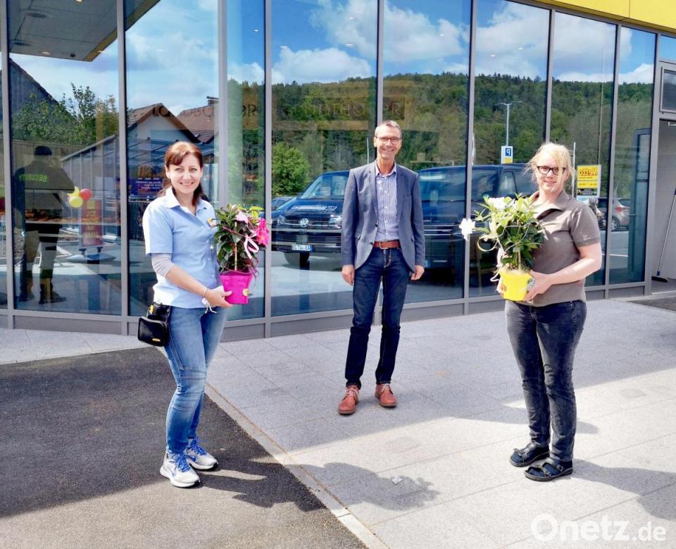 Sowohl Martina Grünthaler als auch Marktleiterin Marina Budulak wünschte er den erhofften unternehmerischen Erfolg, den Kunden viel Freude beim Einkaufen. Für die beiden Damen hatte der Neukirchner Bürgermeister Blumen mitgebracht.