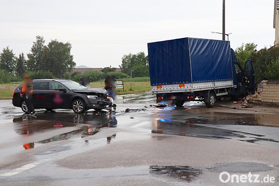 Die 39-jährige Fahrerin eines Skodas übersah am Donnerstag, 28. Juni, gegen 17.40 Uhr, in der Dreichlinger Straße in Neumarkt, dass ein Kleintransporter Vorfahrt hatte. Der Skoda kollidierte laut Polizeibericht mit dem Laster, dieser wiederum fuhr daraufhin ungebremst in die angrenzende Gartenmauer eines stadtbekannten, italienischen Restaurants. Der Kalkstein wurde auf einer Länge von etwa zehn Metern eingedrückt (Schaden: ca. 5000 Euro).