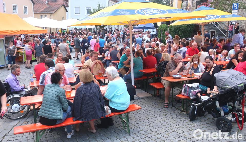 "O'zapft is". Ein kräftiger Schlag genügte Martin Birner beim offiziellen Bieranstich am Samstagabend. Dazu hieß der Bürgermeister zahlreiche Ehrengäste willkommen. Für sie ergriff Stellvertretender Landrat Joachim Hanisch das Wort und zeigte sich beeindruckt, "was die Neunburger wieder auf die Beine gestellt haben". Die Gruppe "PopSixx" eröffnete das Musikprogramm am "Brandplatz" und unterhielt die Leute mit Partyhits. Spanferkel, Steaks, Burger, Grillhendln, Schweinshaxen, Langos und Bratwürste fanden reißenden Absatz. Auch beim Steckerlfisch und bei den Süßspeisen standen die Leute an.