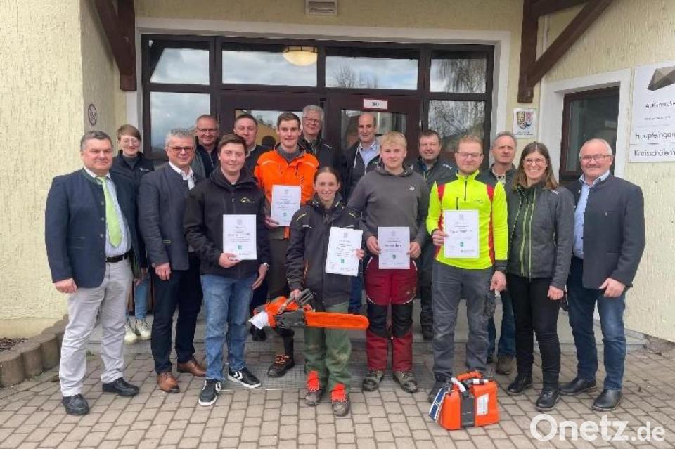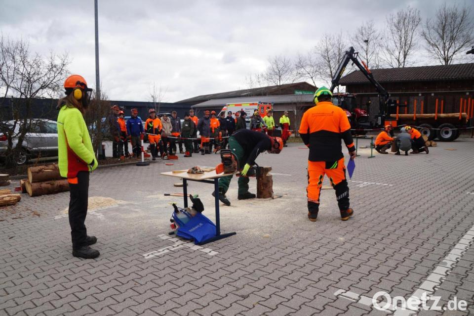 Den richtigen Umgang mit der Motorsäge erlernen, die Säge überprüfen und auf Schutzkleidung achten: 92 Auszubildende absolvierten im Beruflichen Bildungszentrum Neunburg den Regionalentscheid im Forstlichen Wettbewerb. Dieser ist Teil ihrer Fachausbildung. Die jungen Frauen und Männer aus den Landkreisen Schwandorf, Regensburg, Cham, Neumarkt und Amberg-Sulzbach mussten zuerst einen schriftlichen Wissenstest bestehen. Dabei sollten sie unter anderem die Teile einer Motorsäge benennen, den Borkenkäfer erkennen und Bäume bestimmen. Anschließend ging es ins Außengelände, um die praktischen Disziplinen zu durchlaufen.