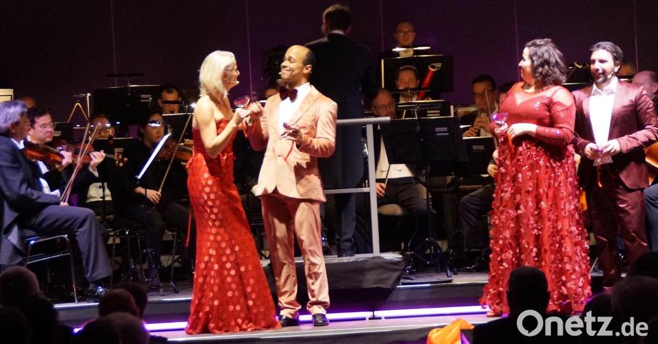Mit der Ouvertüre "Habanera" aus der Oper "Carmen" wurde der Abend von den 60 Musikerinnen und Musikern eröffnet, bevor es mit dem "Lied an den Mond" aus Antonin Dvoraks erfolgreichster Oper "Rusalka" weiterging. Die Sängerinnen Esther Baar (Vertretung der erkrankten Vera Semieniuk) und Gesche Geier sowie ihre männlichen Kollegen Jeffrey Nardone und Daniel Ochoa sangen sich durch ihre starken Stimmen von der ersten Minute an in die Herzen der Zuhörer. Sie trugen hervorragend das Trinklied "Trinke Liebchen, trinke schnell" und die "Annen-Polka" aus den Operetten von Johann Strauß, die "Fledermaus" und "Eine Nacht in Venedig" vor und stellten die Szenen exzellent schauspielerisch dar.