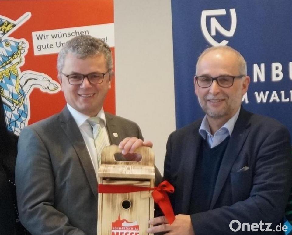 "Endlich wieder Messe!" Die Freude stand Bürgermeister Martin Birner ins Gesicht geschrieben, als er das Team des Vereins Schwarzachtalmesse mit Sprecher Peter Scheitinger im Rathaus empfing. Nach dreijähriger Pause findet die Großveranstaltung rund um die Schwarzachtalhalle am 22. und 23. April wieder statt. Peter Scheitinger trug dem Stadtoberhaupt die Ehrenschirmherrschaft an und überreichte zum Dank ein Vogelhäuschen mit den Worten: "Vielen Dank für die Unterstützung und das gute Miteinander. Die Begleitung unserer Messe vonseiten der Stadt ist immer sehr positiv." Bürgermeister Birner hob hervor: "Was ihr ehrenamtlich leistet, ist der Hammer". Die gesamte Organisation seit eine große Herausforderung. 106 Aussteller sind dieses Jahr dabei, davon 14 neue, informierte Peter Scheitinger.