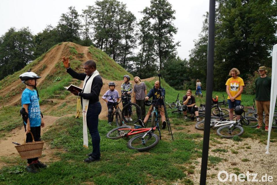 Nach der Segnung durch Pfarrvikar Emmanuel Ogbu fuhren sie ihre Runden "über Stock und Stein", machten Salti auf dem höchsten Punkt des großen Hügels mit dem Fahrrad und hatten jede Menge Spaß.