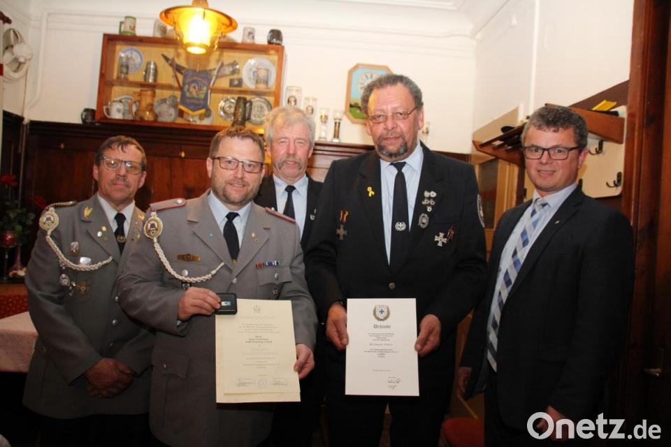 Neben den Neuwahlen der Vorstandschaft sollten einige Mitglieder bei der Jahreshauptversammlung der Soldaten und Kriegerkameradschaft (SuKK) Neunburg vorm Wald geehrt werden. Doch nur zwei der zu Ehrenden konnten bei der Einladung anwesend sein. Die Treuenadel des Bayerischen Soldatenbunds (BSB) erhalten: Für zehnjährige Mitgliedschaft Bernhard Kirchberger, für 20 Jahre Petra Schindler und Daniel- Michael Zandt, für 25 Jahre Josef Vetter, für 30 Jahre Josef Gleixner und für 40 Jahre Josef Winderl. Das Abzeichen des BSB für 20-jährige Tätigkeit als Fahnenträger hat Richard Jobst erhalten, mit der Verdienstspange des Volksbundes der Deutschen Kriegsgräberfürsorge für zehnjährige Sammeltätigkeit ist Jürgen Demleitner, der Vorsitzende der KSK Kleinwinklarn vom BSB-Kreisvorsitzenden Ulrich Knoch, dem Ortsvorsitzenden Gerhard Forster und Bürgermeister Martin Birner ausgezeichnet worden.
