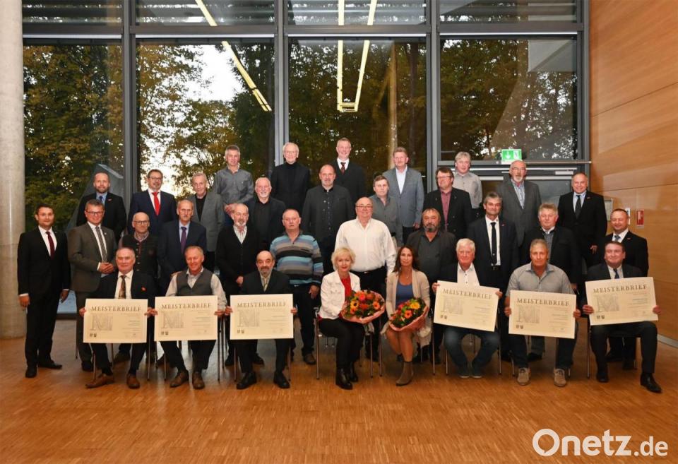 Für jahrzehntelange Verdienste im Handwerk ehrte die Handwerkskammer Niederbayern-Oberpfalz in der Schwarzachtalhalle in Neunburg vorm Wald 26 Handwerksmeister mit dem Goldenen Meisterbrief und dem goldenen Abzeichen „M“. Diese Ehrung erhalten Handwerker, die vor mindestens 35 Jahren die Meisterprüfung oder eine vergleichbare Prüfung in Ostbayern abgelegt haben und seither selbstständig oder angestellt in dieser Funktion tätig sind.