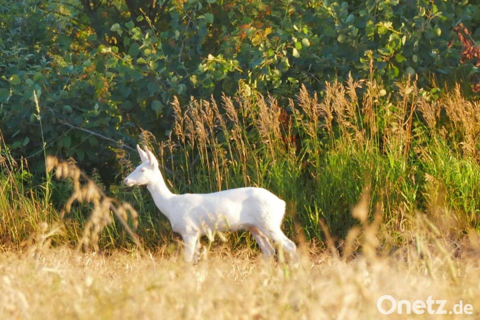 „Ich habe jenseits des Feldes einen weißen Fleck erblickt und mit dem Zoomobjektiv meines Fotoapparats erkannt, dass es sich um ein Albino-Reh handelt,“ erzählt sie. Das Reh war friedlich am Grasen und die Hobbyfotografin konnte einige schöne Aufnahmen machen, bevor das Tier mit einem braunen Artgenossen davon sprang.