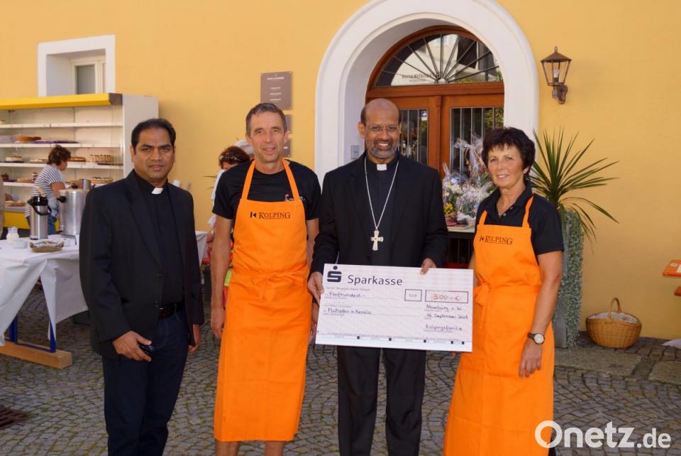 In Anwesenheit von Bischof Remigius Inchananiyil (Diözese Thamarassery) übergaben Stephan Meier und Gaby Reiml, Mitglieder des Leitungsteams, und Präses Pfarrvikar Benny Joseph Kochumundammalayi symbolisch den Scheck. Laut Gaby Reiml soll diese Unterstützung die Anteilnahme am Geschehen in Kerala, der Heimat von Präses Benny Josef, zum Ausdruck bringen. Diese soziale Hilfsaktion war über einen Aufruf des Pfarrgemeinderates der Pfarrei angeregt worden.