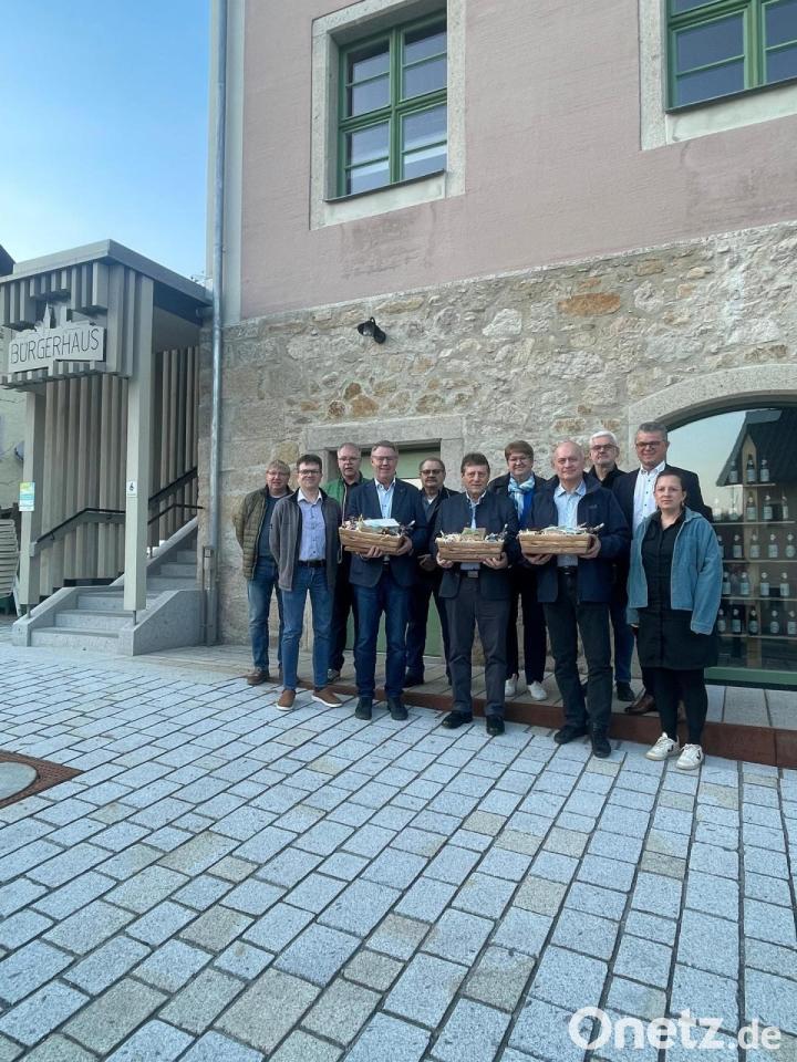 Mit einem regionalen Präsentkorb wurden Walter Schauer, Bürgermeister der Gemeinde Thanstein, Herbert Bauer, Bürgermeister des Marktes Stamsried, und Franz Haberl, Bürgermeister der Gemeinde Pemfling, verabschiedet.