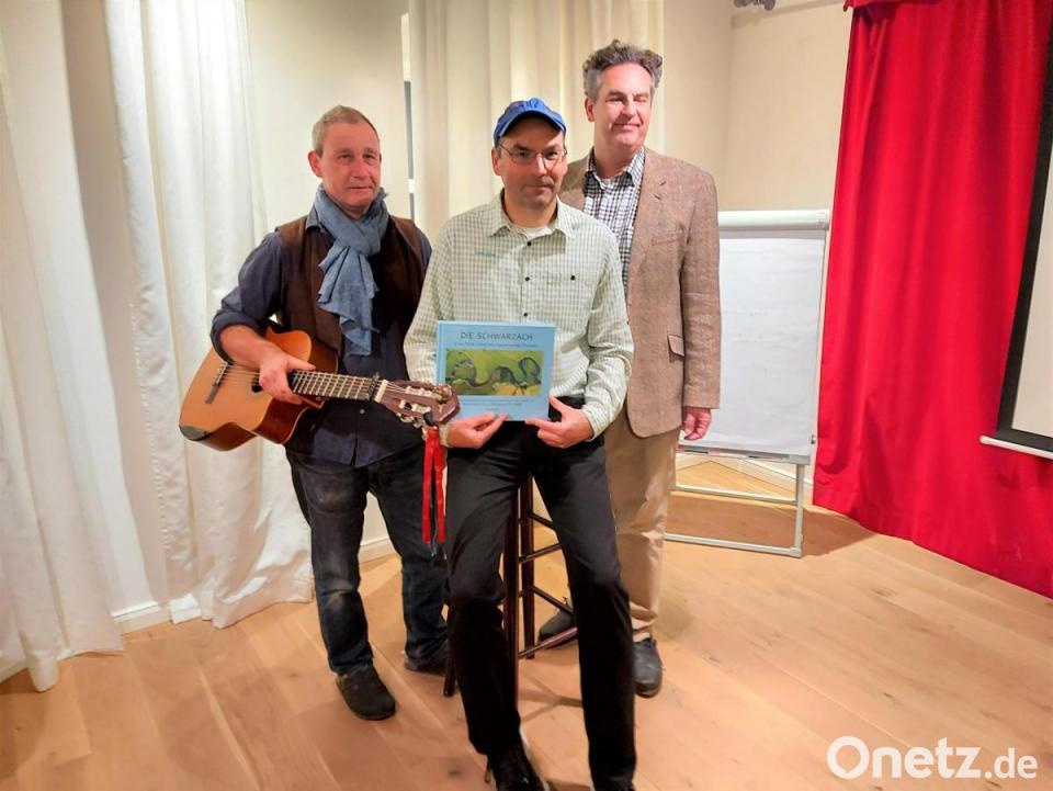 „Dann pack mas o“ sang Fredman Lill, der die gesamte Präsentation stimmungsvoll mit tiefsinnigen Texten und seiner einfühlsamen Gitarrenmusik begleitete. Josef Merkls Bildband ist eine Hommage an diese Flusslandschaft, beginnend bei den beiden Quellen in Waldhäuser bei Stadlern und im tschechischen Zavist. Merkl porträtiert die Schwarzach von ihren Anfängen bis zur Mündung in die Naab nahe Schwarzenfeld.