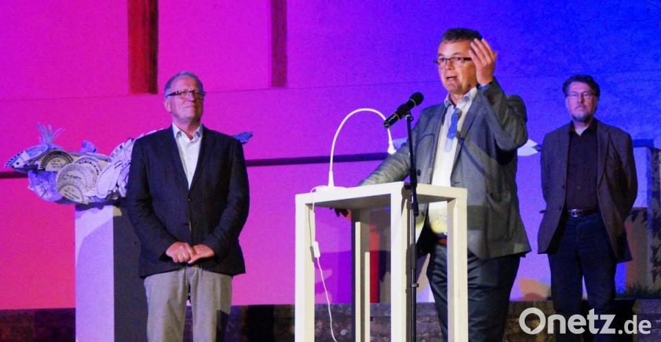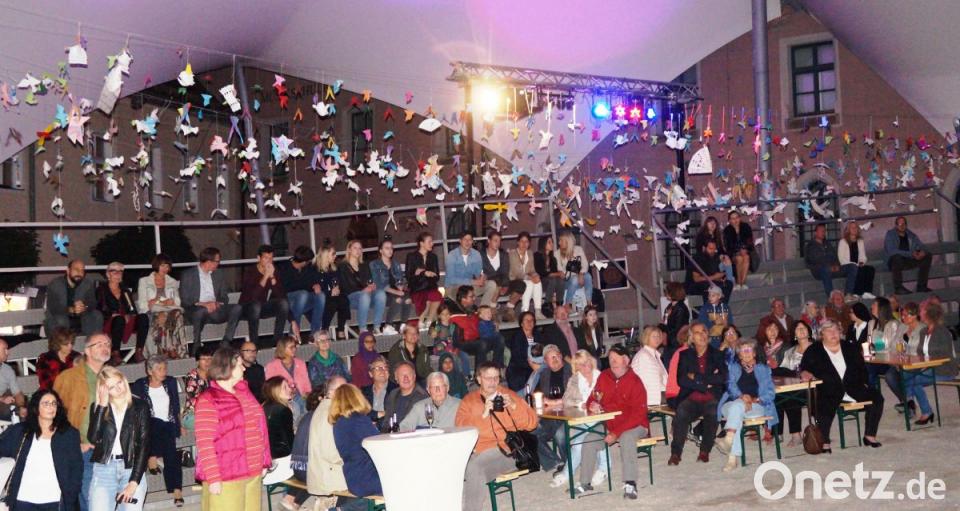 Der Vorsitzende des Kunstvereins Unverdorben, Peter Wunder, begrüßte die vielen Gäste, die sich im idyllischen Burghof eingefunden hatten, darunter auch die Vertreter der beteiligten Bildungseinrichtungen. Auch Bewohner der Asylunterkunft beteiligten sich mit Elke Reinhart und der Ideengeberin des Projekts, Künstlerin Miriam Ferstl, an der Aktion Friedenstauben. „Kunst für den Frieden, das ist heute dringend notwendig“, stellte Wunder klar. Die Beteiligung von deutschen und tschechischen Künstlern an der Ausstellung zeige die deutsch-tschechische Freundschaft und die Bedeutung von Aussöhnung, was auch ein großes Anliegen des Vorsitzender Peter Wunder ist. Für die Freunde und Künstler, die aus Tschechien angereist waren, übersetzte Dana Ettl die Ausführungen von Peter Wunder.