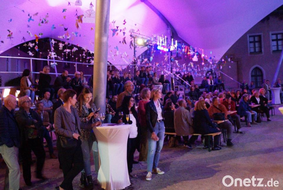 Zweiter Vorsitzender Karl Stumpfi übernahm die Vorstellung der Künstler, deren Werke unter der Lichtregie von Wolfgang Gräßl mittels Beamer an die Fassade der Kirche projiziert wurden. Andächtige Ruhe kehrte ein, als die von Miriam Ferstl von unten aufgenommenen Bilder von Kronleuchtern aus Kirchen in Marienbad und Karlsbad sowie aus deutschen Kirchen gezeigt wurden. Die Präsentation der aus Seebarn stammenden und mittlerweile international agierenden Fotokünstlerin Miriam Ferstl beeindruckte und wurde durch die Musik des Gitarristen Tassilo Männer gefühlvoll untermalt. Mit dem für diese sensationellen Bilder selbst komponierten und arrangierten Gitarrenstück „Soul from Lights“ sorgte er für eine kongeniale Begleitung. Die Fotos waren auch als beleuchteete Objekte im Burghof ausgestellt. In Digitaldruck auf Glas wurden sie von der Firma Irlbacher Blickpunkt Glas hergestellt.
