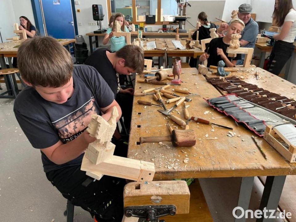 Tierisch ging es beim Holzbildhauerworkshop der Talentgruppe Werken in der Gregor-von-Scherr-Schule zu. Bereits zum zweiten Mal führte der Bad Kötztinger Holzbildhauermeister Josef Fischer die Realschüler in sein Handwerk ein. Höchst motiviert fertigten die Schüler Tierskulpturen aus Lindenholz. Nach Erklärungen zur Handhabung von Stemmeisen, Stechbeitel und Klüpfel ging es los. Ausgehend von grob vorgesägten Holzstücken, stemmten und raspelten die Schüler voller Tatendrang, um der Form ihres Tieres näher zu kommen. Dabei war Vorsicht geboten, denn einmal weggeschnitztes Holz lässt sich nun mal nicht mehr rückgängig machen. Zum Glück stand Josef Fischer als Experte stets mit Rat und Tat zur Seite. Um das Werkstück zu vollenden, wurde anschließend gefeilt und geschliffen, was das Zeug hält. Dabei bevorzugten die einen eine sehr glatt gestaltete Oberfläche, während andere lieber die raue Struktur des Holzes betonen wollten.