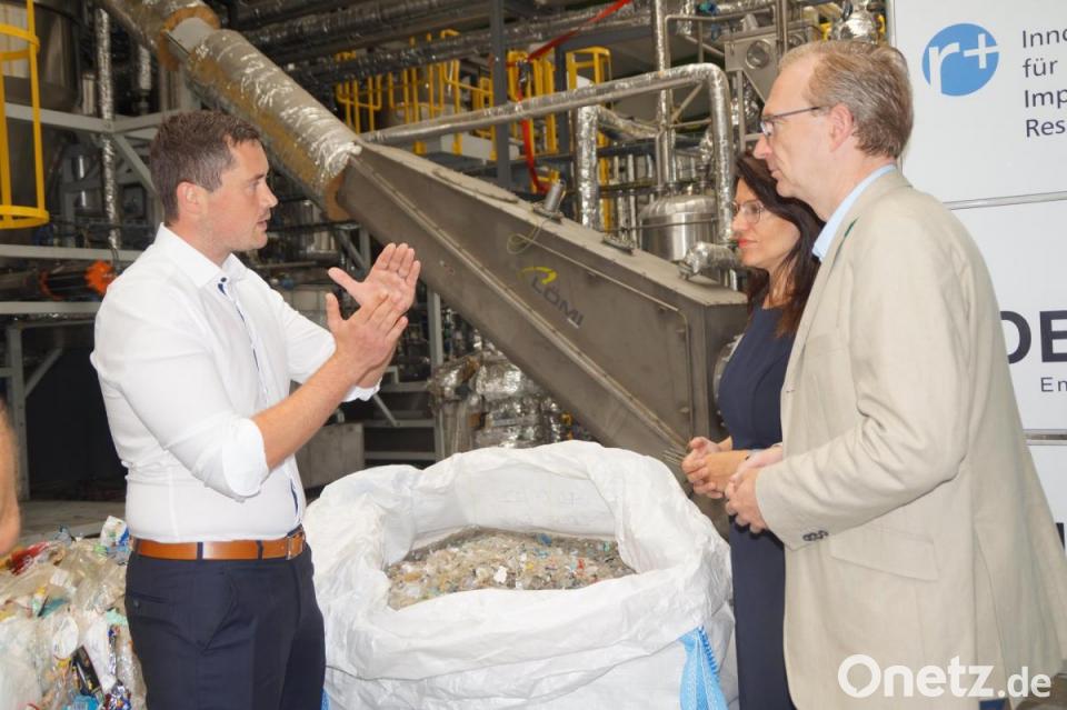 Im Aufenthaltsraum des Stammsitzes wurde das Projekt mit den anwesenden Politikerinnen und Politikern, MdB Martina Englhardt-Kopf, MdL Alexander Flierl, Landrat Thomas Ebeling, Bürgermeister Martin Birner und Stadtrat Matthias Meier ausgiebig diskutiert. "Wir sind anlagentechnisch so weit, dass wir loslegen könnten", so die Meinung von Johannes Lober, der mit seinem Bruder Bernhard als Geschäftsführer fungiert, "aber es braucht auch einen Markt, der das recycelte Produkt abnimmt." Bei 60 Prozent Energiekosten der Anlage und einem gesunkenen Kunststoffpreis sei die markttechnische Umsetzung nicht gerade einfach.