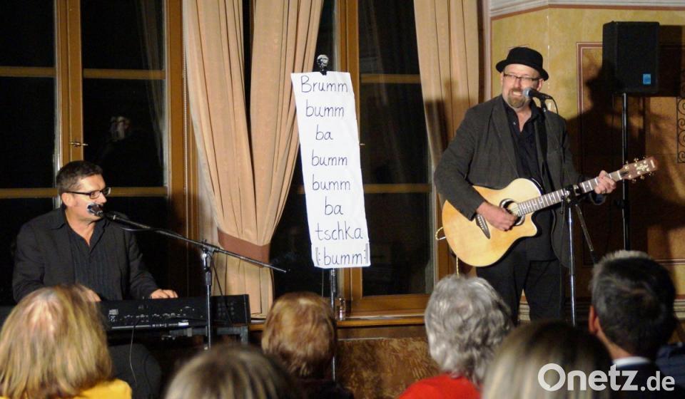 Die Gäste bogen sich vor Lachen, als sie mit "Brumm bumm ba bumm tschaka bum" die Geräusche eines Autos singen mussten und das "Klacker di klack" der kaputten Türe. Einen humorvollen Abend hatte Markus Wondraschek, der Vorsitzende der Neunburger Volkshochschule, als Gastgeber bei der Begrüßung versprochen. Den hatten die Zuschauer im locker besetzten Schlosssaal auf jeden Fall.