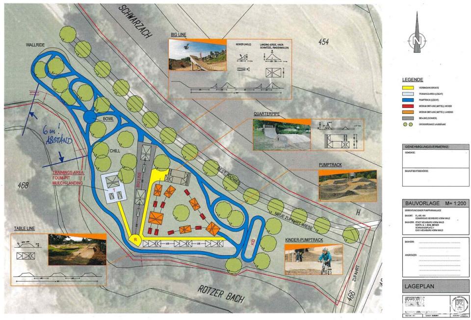 Der Park sollte über mehrere einzelne Elemente verfügen, zum Beispiel einen Starthügel oder einen Tricksprung. Für den Bau wird hauptsächlich Lehmboden und grobkörniger Sand benötigt. Das Gelände bleibt weitestgehend unangetastet, da die Hindernisse durch Erdauftrag erbaut werden. Durch naturnahes Bauen soll die Umwelt geschont werden, der Park ist sofort nach der Fertigstellung einsatzbereit und jederzeit kontrolliert veränderbar. Wegen der Lage im Bereich zwischen dem Rötzer Bach und der Schwarzach ist eine entsprechende Eingrünung geplant.
