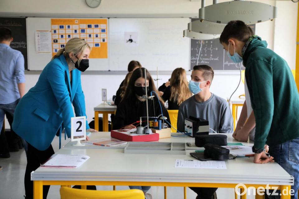 Kultusstaatssekretärin Anna Stolz (Freie Wähler) informierte sich nun aus erster Hand im Beisein des stellvertretenden Landrates Richard Tischler, dem digital zugeschaltetem Schulverbandsvorsitzenden Martin Birner, seinem Stellvertreter Markus Schiesl aus Altendorf und dem Schulamtsdirektor und fachlichen Leiter des Schulamts Schwandorf, Johann Hilburger, über die digitale Entwicklung an der Neunburger Vorzeigeschule.