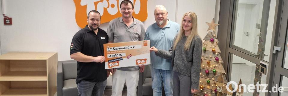 Der Trolli-Standort in Neunburg vorm Wald hat auf seiner Weihnachtsfeier 1.050 Euro gesammelt und an den gemeinnützigen Verein 9.9 Schwarzachtal e.V. gespendet. Am Freitag, 12. Dezember, übergaben Werkleiter Stefan Neft, Betriebsratsvorsitzender Georg Voith und Auszubildende Vanessa Scheurer den Spendenscheck an den Vorsitzenden des Vereins, Daniel Maierhofer, heißt es in einer Pressemitteilung.