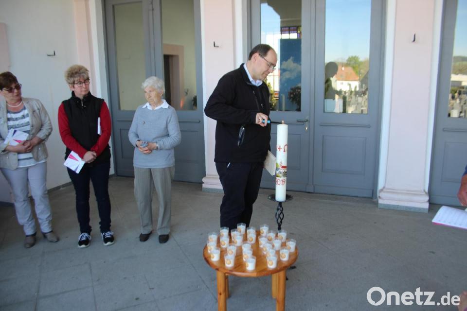 Die evangelischen Christen feierten in der evangelischen Kirche am Sonntagmorgen einen Gottesdienst, dem sich ein gemeinsames Osterfrühstück anschloss. Pfarrer Gerhard Beck erinnerte an die Menschen, die durch ihren Osterglauben ihr Leben riskiert hätten. Am Ostermontag wurde die Osterkerze ausgegeben entzündet. Tod und Auferstehung seien sehr nahe miteinander verbunden. Anschließend stellten die Gläubigen eine Kerze am Grab ihrer Verstorbenen ab.