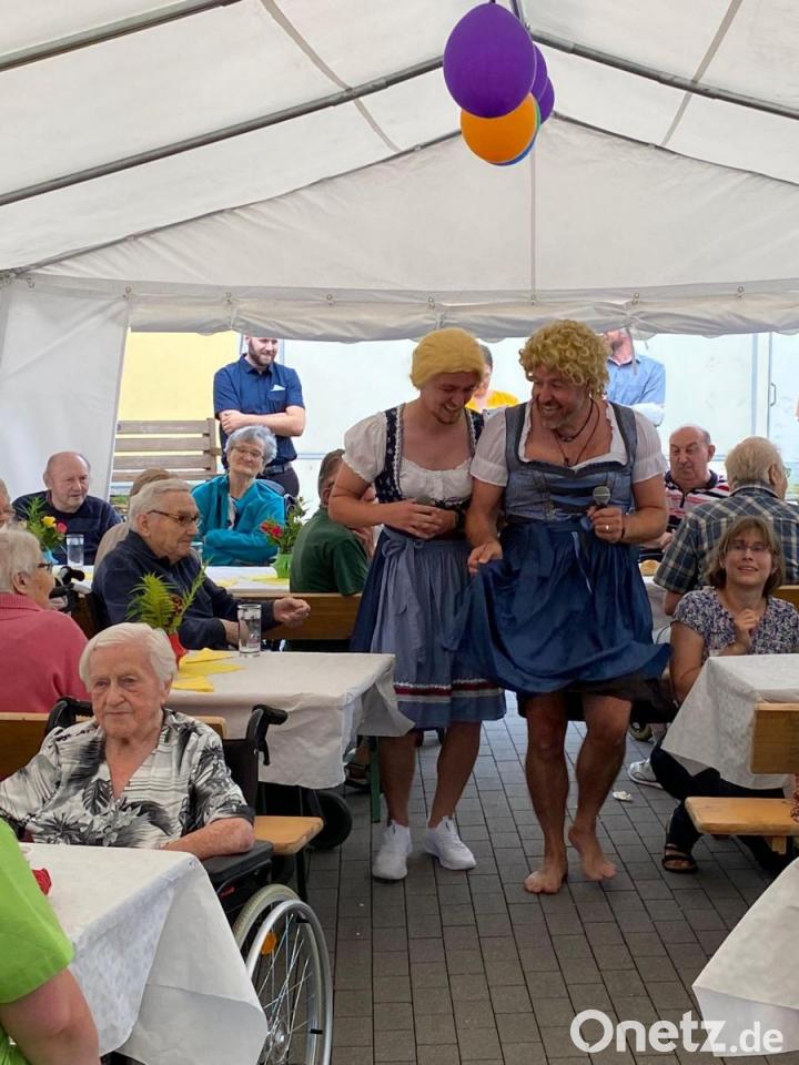 Dabei reichte die Palette der Auftritte zum Vergnügen der Senioren von Elvis Presley, den Wildecker Herzbuben, Maria und Margot Helwig bis hin zu Heino und Roberto Blanco. Danach schloss sich die Ehrung der schon am längsten im Heim lebenden Bewohner mit Tassen mit Logo und Jahreszahl an.
