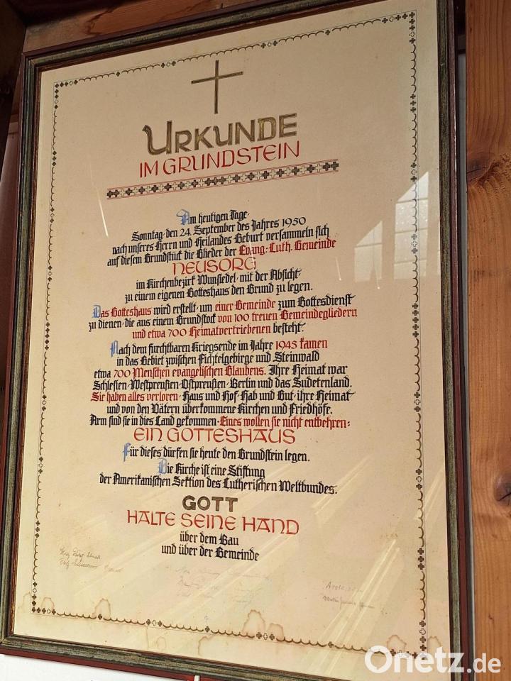 Neusorg wurde 1950 zum eigenständigen Vikariat ernannt und im gleichen Jahr, am 19. November 1950, konnte auch die Christuskirche eingeweiht werden. „Sie wurde schlüsselfertig an die Gemeinde übergeben“, heißt es in der Mitteilung der Kirchengemeinde. Bis dahin seien die Gottesdienste in dem überwiegend katholischen Ort teilweise in einer Kantine oder in Privatwohnungen abgehalten worden. Bedingt durch die Ansiedlung vertriebener Familien nach 1945 habe sich die Einwohnerzahl der evangelischen Bürger erheblich erhöht. „Diese wollten jedoch eines nicht entbehren – ihr eigenes Gotteshaus. Die kleine Glocke, die bis heute die Gemeinde zum Gottesdienst ruft, ist mit einer Inschrift versehen: ‚O Land Land Land höre des Herrn Wort‘“, schreibt Rubenbauer.