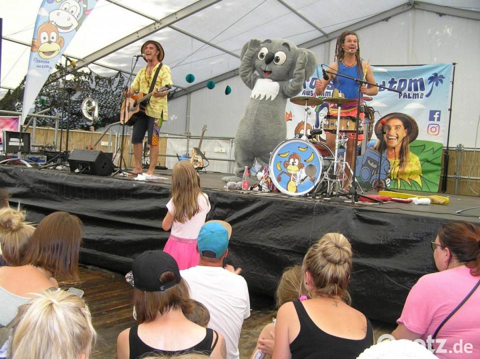Der Nachmittag war das Highlight für die Kinder. Bei strahlendem Sonnenschein heizten Rodscha aus Kambodscha mit der Gitarre und Tom Palme am Schlagzeug den Kleinen im Festzelt ein. Sie animierten alle zum Mitsingen und Mittanzen. Im Rausch der Begeisterung ließen sich die Kleinen mit Wasser bespritzen und freuten sich über die Abkühlung. Höhepunkt war, als auch noch ein " Koala" auf der Bühne erschien und gemeinsam mit den Kindern sang. Da mussten sogar die Väter und Mütter die Kleinen auf der Fläche vor der Bühne unterstützen und sich in das Getümmel stürzen.
