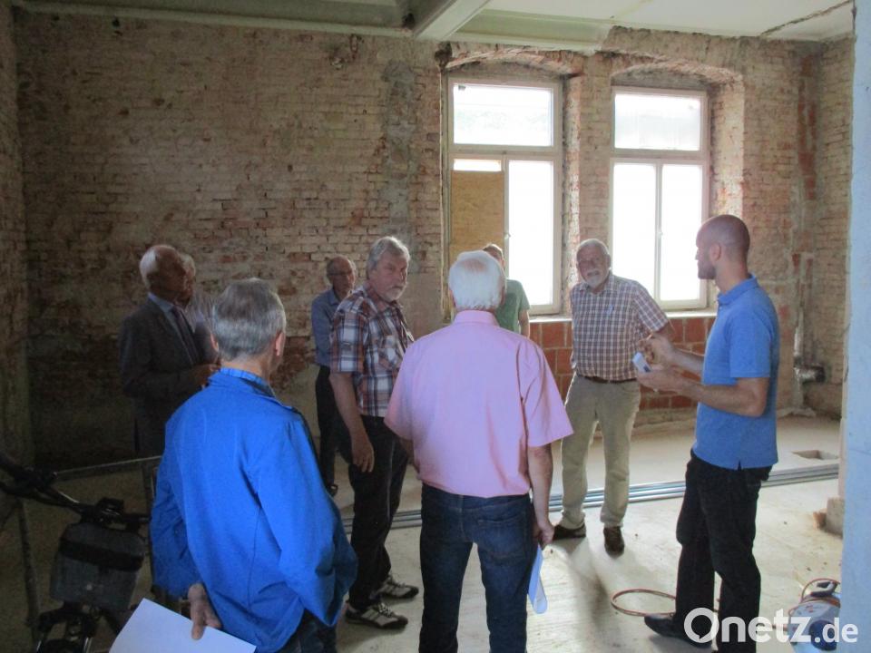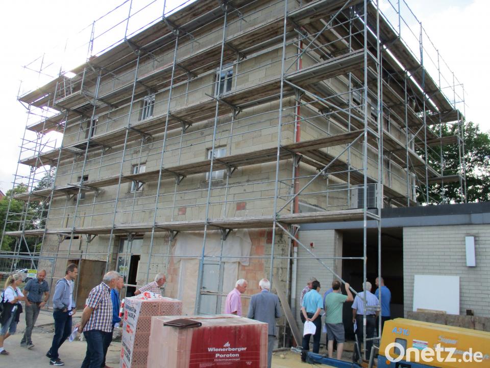 Das Gebäude zeigt nach Entfernung der Außenverkleidung inzwischen den ursprünglichen Anblick seiner Sandsteinmauern. Im Innenbereich erfolgte eine Teilentkernung und es sind bereits Fortschritte im Bereich der Elektroinstallationen zu erkennen. Das Dach des Gebäudes wurde bereits abgereinigt und es habe sich ein guter Zustand bis auf einige kleine reparaturbedürftige Stellen herausgestellt. Die Betonziegel werden noch 20 bis 25 Jahre halten, berichtete Klose.
