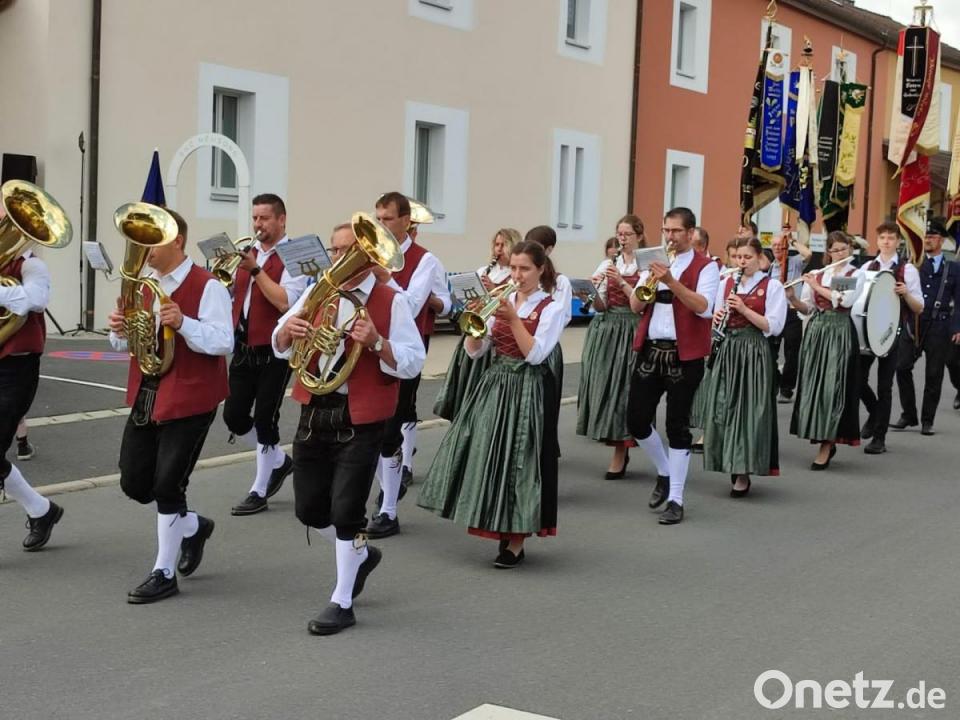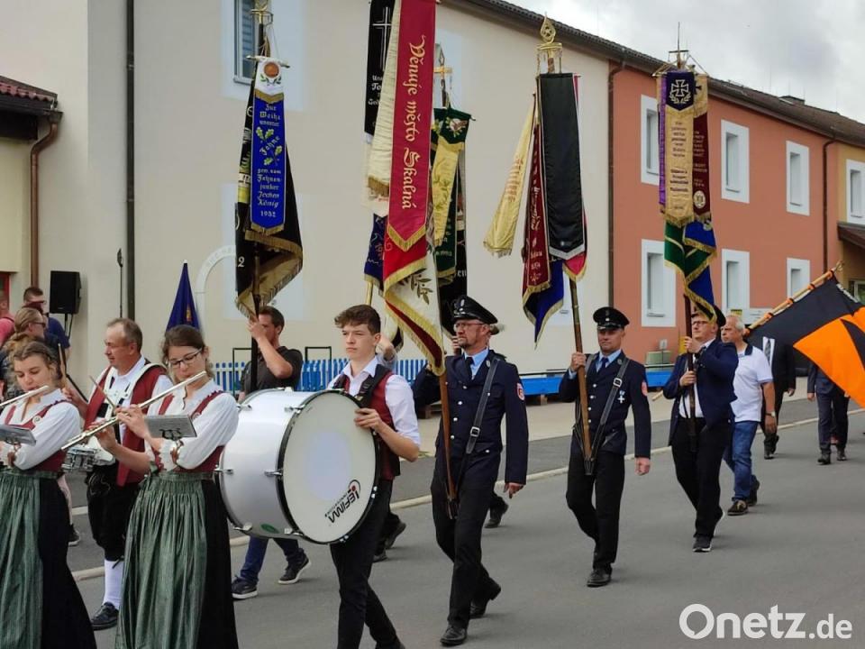 Laut der Mitteilung bewegte sich nach dem Gottesdienst ein Festzug zum Festplatz, musikalisch angeführt von den Steinwaldmusikanten. Der Festplatz erstreckte sich von der Schule über das Feuerwehr-Gerätehaus bis zum Ärztehaus.