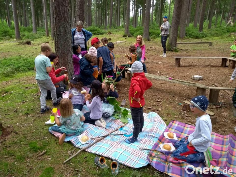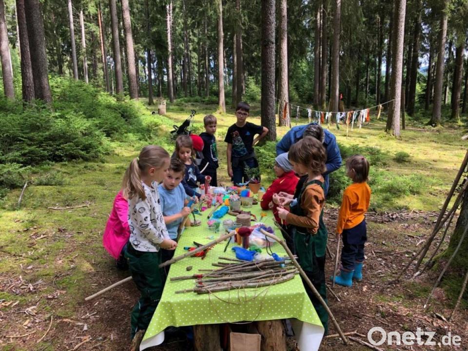 Nach der Begrüßung durch Bürgermeister Peter König und dem Besprechen der wichtigsten Waldregeln durften sich die Mädchen und Jungen an fünf verschiedenen Stationen austoben, kreativ zeigen und in Geschicklichkeit üben, heißt es in einer Mitteilung. Aus Blumentöpfen und allerlei Bastelmaterial wurden demnach tolle Kunstwerke zum Mitnehmen gestaltet und eigens gefundene Wanderstöcke mit Federn und Perlen verziert. An einer weiteren Station versuchten die Kinder, möglichst viele Punkte beim Tannenzapfen-Dosenwerfen zu sammeln.