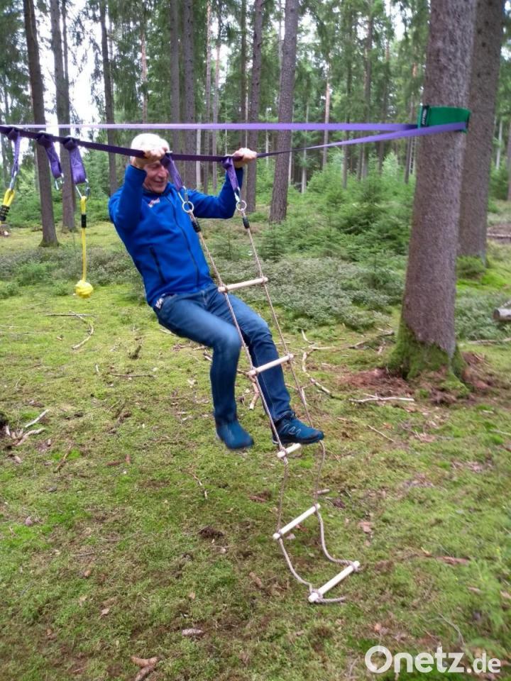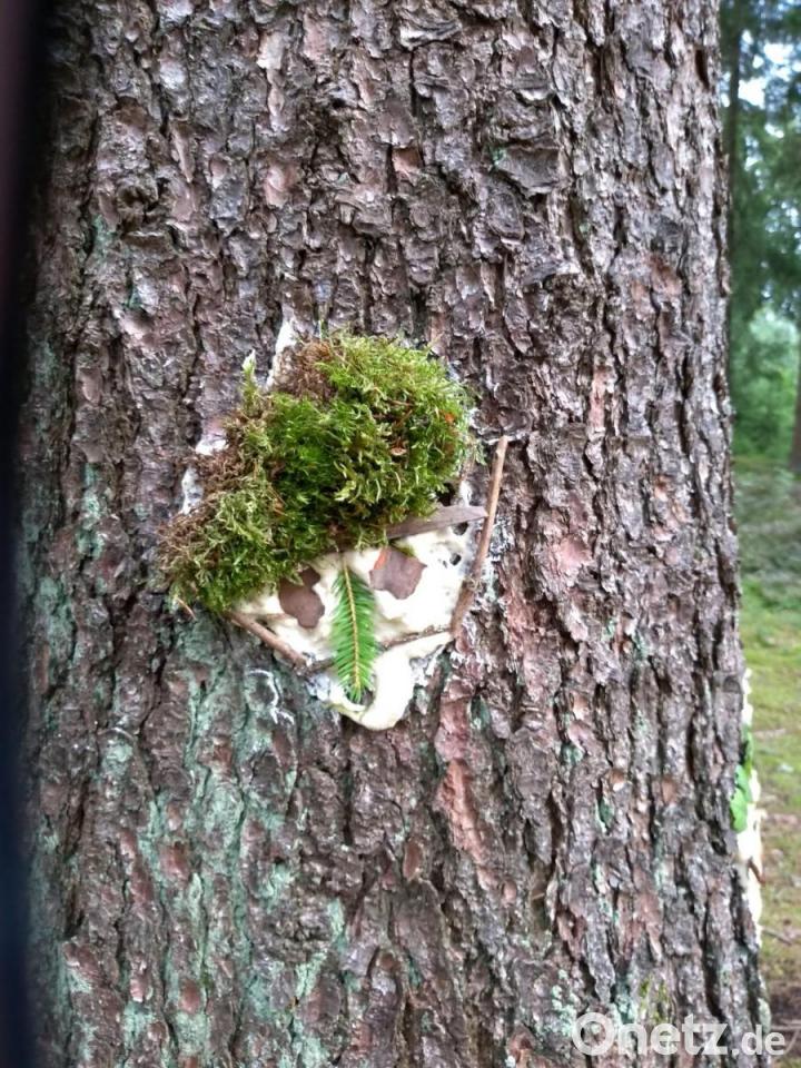 Matschig wurde es beim Erschaffen von Waldgesichtern: Zuerst musste ein Teig hergestellt werden, der dann an Bäumen als Grundlage für lustige und gruslige Waldgesichter diente, wobei durch viele "Waldschätze", die die Mädchen und Buben vorher aufgelesen hatten, der Fantasie keine Grenzen gesetzt waren. Etwas sportlicher wurde es an Station vier, wo die Kinder natürliche Hindernisse überwinden mussten, ohne dabei Steinchen oder Tannenzapfen in Bechern zu verlieren. Schließlich konnten sie sich an einem kleinen Ninja-Parcours zwischen zwei großen Fichten austoben.