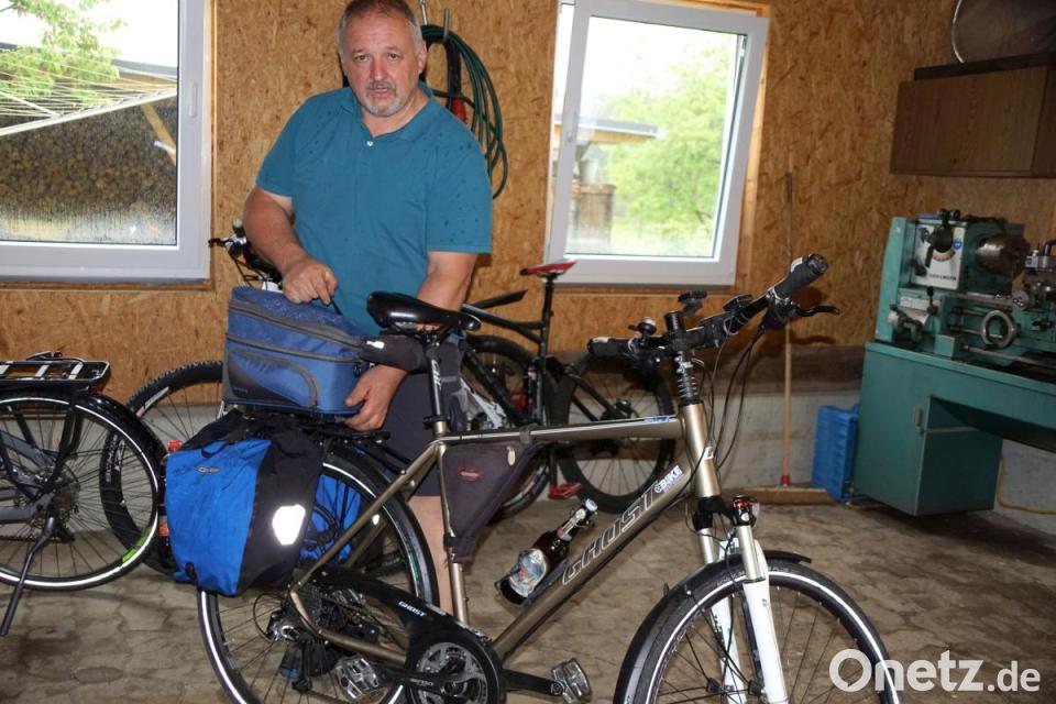 Mit Muskelkraft und ohne elektronische Unterstützung will sich Kuhbandner am Sonntag nach dem Kirchenbesuch in Riglasreuth auf dem Weg machen. Sein Ziel ist der Wallfahrtsort Santiago de Compostela in Spanien. Rund 2500 Kilometer wird er kräftig kurbeln müssen. Ein paar Ersatzteile wie zwei Schläuche, Bremsklötze und eine Kette als Verschleißteil hat er dabei auf dem Jakobsweg. Wenn alles gut verläuft, kann er zwischen dem 25. und 27. Juni wieder nach Hause fliegen. Das Rad wird auf dem Postweg nachfolgen. Allerdings: „Ich muss erst mal runterkommen.“