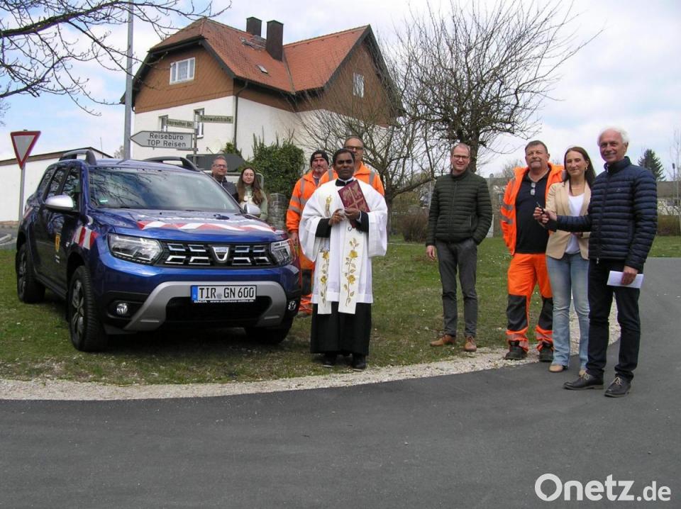 Wie der Bürgermeister erklärte, habe das Fahrzeug die Farbe Blau als Symbol für das Wasser erhalten. Julia Haider von der Verwaltungsgemeinschaft habe für den Versicherungsschutz des Fahrzeugs gesorgt, nun sei mit der Segnung durch Pfarrer Julius Johnrose auch der himmlische Schutz vorhanden.