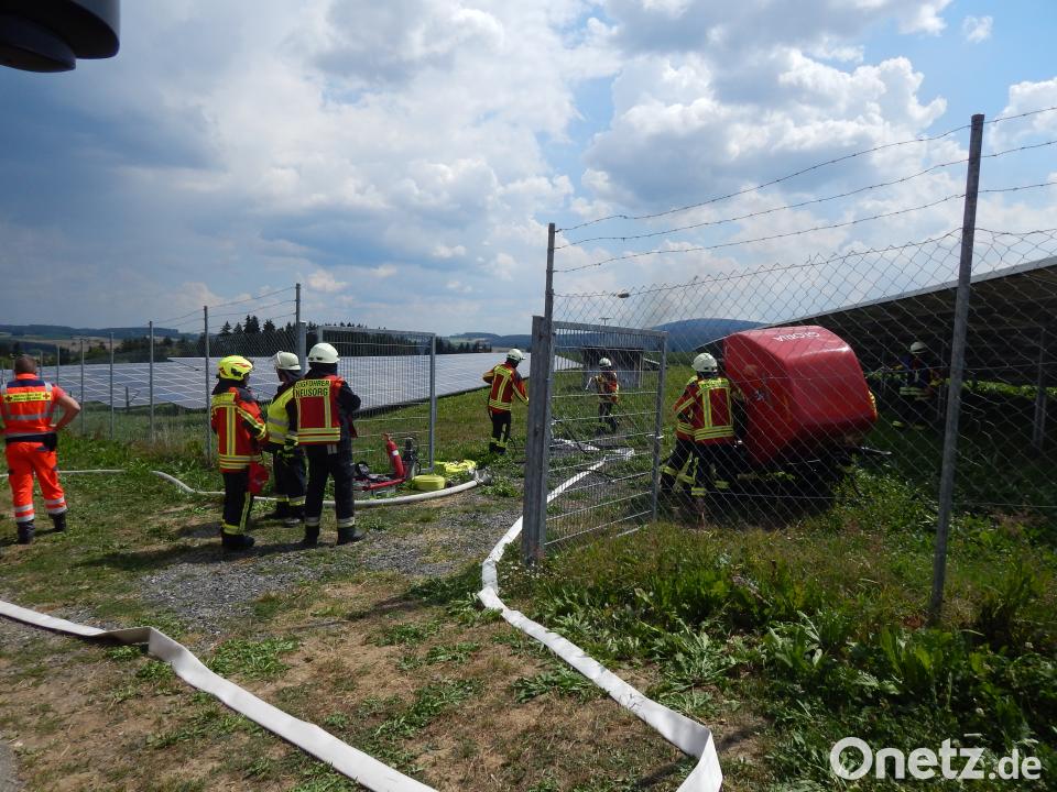Aufgrund der geringen Ausbreitungsgefahr, jedoch des erhöhten Risikos eines möglichen Stromüberschlags, wurde im sicheren Abstand ein dreifacher Brandschutz in Bereitstellung aufgebaut. Dabei kam auch der im Erstalarm angeforderte Pulverlöschanhänger der Feuerwehr Kemnath zum Einsatz, der 250 Kilogramm Löschpulver fasst, zum Einsatz. Die Neusorger Brandschützer errichteten zudem einen mobilen Wasserwerfer und stellen ein Schaumrohr in Bereitschaft. Mehrere Trupps waren unter schwerem Atemschutz angerückt.