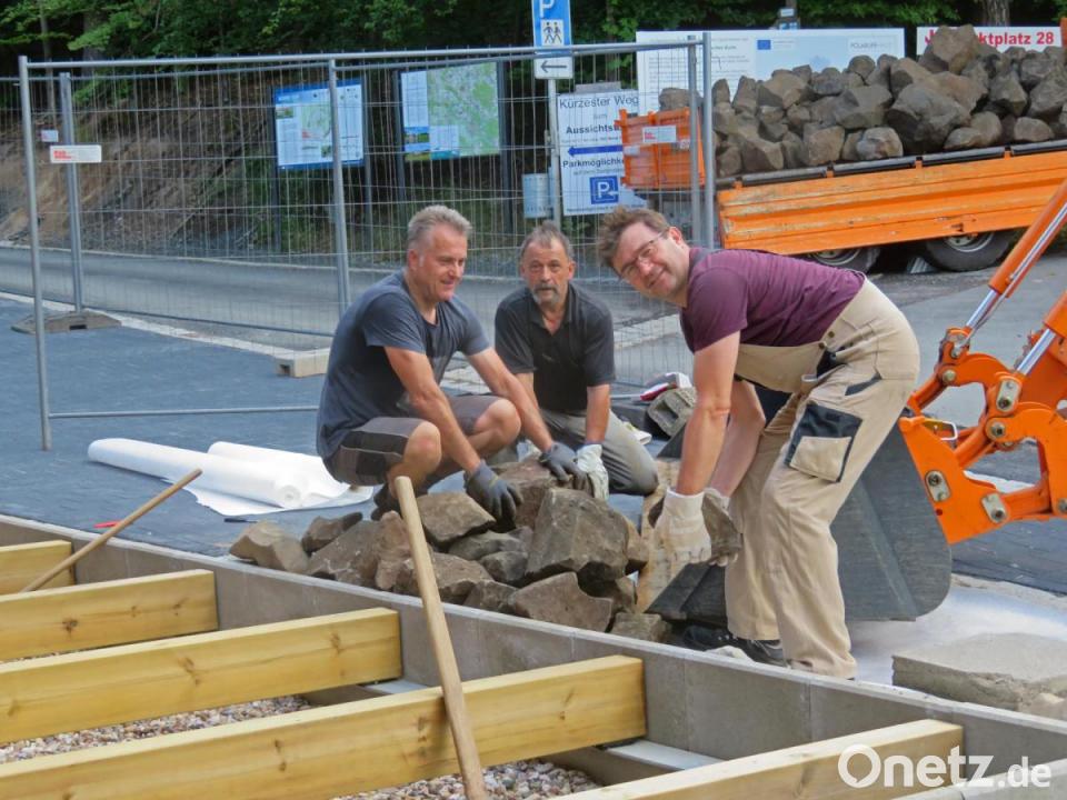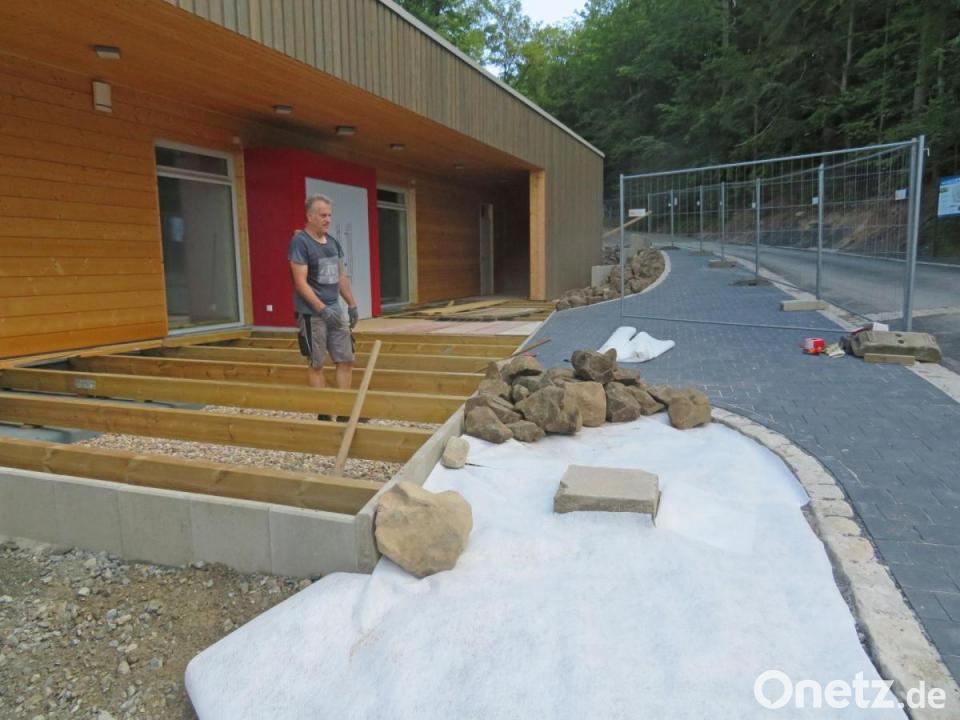 Viele Einheimische sehnen aber den Tag herbei, an dem sie auf der Terrasse bei einem kühlen Bier oder einer Tasse Kaffee den Blick auf die Kulmregion genießen können. Dies wird nicht mehr lange dauern, versicherte Bürgermeister Wolfgang Haberberger, der momentan mit seinem Stellvertreter Helmut Schäffler und Stadtrat Manfred Rix die Außenanlagen mit großen Basaltsteinen verschönert.