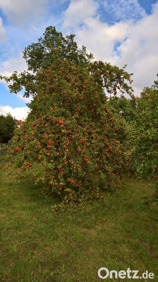 Auch wenn man die Bäume ansieht, wie auf der Streuobstwiese am Ortseingang von Neustadt am Kulm, fühlt man sich regelrecht in das legendäre Schlaraffenland versetzt. Bis zum Boden werden die Äste von ihrer Last gezogen. Äpfel in allen Farben wetteifern mit Zwetschgen und Birnen. Es ist ein selten schönes und buntes Bild.