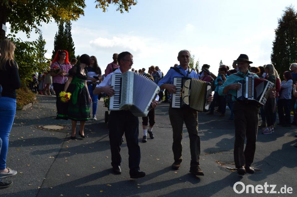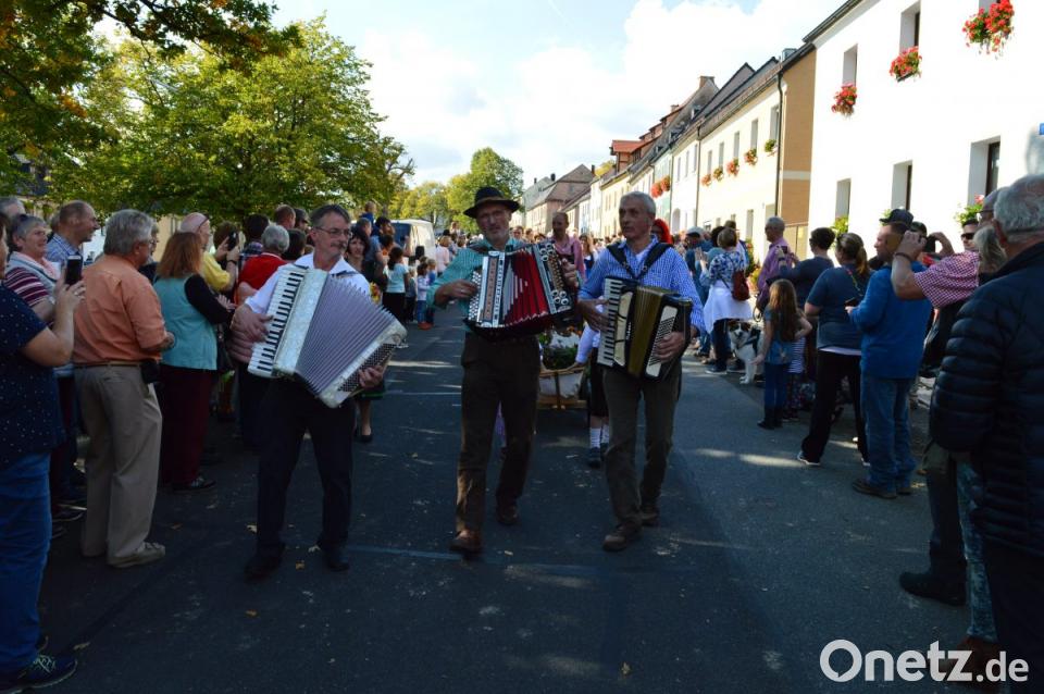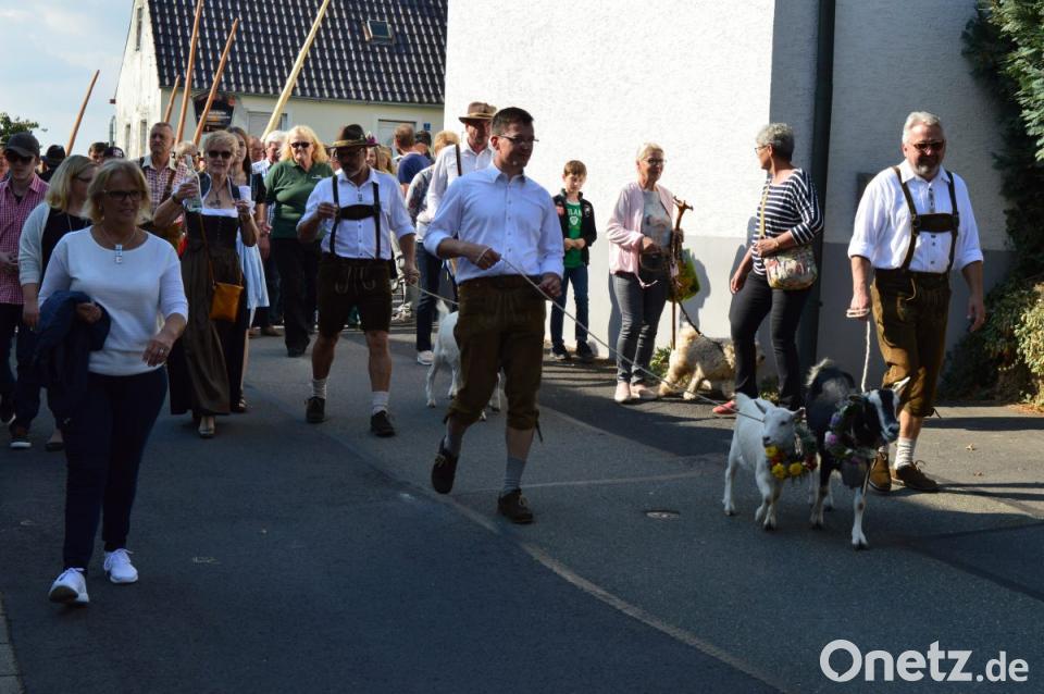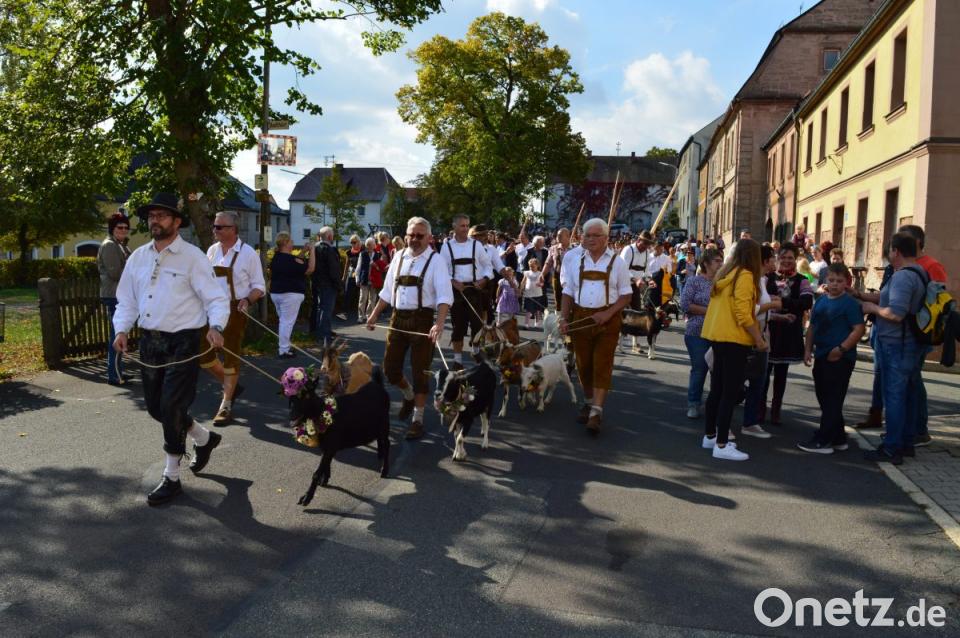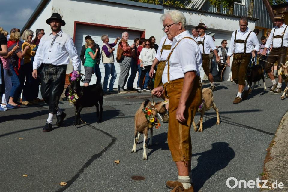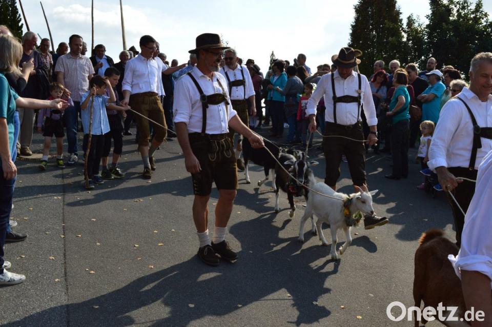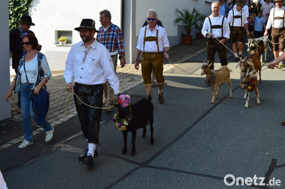 Nach der Begrüßung durch den Vorsitzenden des Obst- und Gartenbauvereins, Andre Dietrich, zogen die Tiere begleitet von den Musikanten Manfred Wilfling, Herbert Kiefer und Georg Lauss, vorbei an den vielen Zuschauern zum Markplatz. Mit im Zug waren auch Holunderkönigin Jana Schäffler, der Schirmherr der Veranstaltung, Georg Stahl, sowie MdL Tobias Reiß (CSU). Ein buntes Bild gaben dem Zug der Nachwuchs des Obst- und Gartenbauvereins, die "Stacheligen Kulmkids", alle in Lederhosen und Dirndl gekleidet.