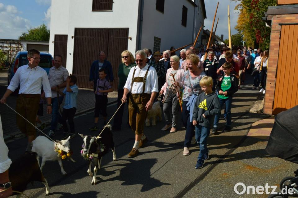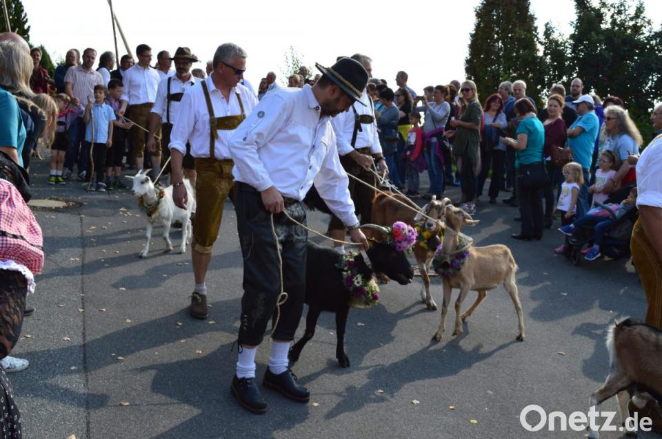 Angeführt von Bürgermeister Wolfgang Haberberger folgten die acht meckernden Rasenmähern. Auf dem Festplatz angekommen, wurden die Tiere in ein Gatter geführt. Als Lohn für ihre fleißige Arbeit gab es für die Tiere frisches Obst und jede Menge Streicheleinheiten von den kleinen Festbesuchern. Bürgermeister Haberberger begrüßte die Gäste und dankte den Organisatoren und Helfern. Schirmherr Georg Stahl spendete eine Ziege.