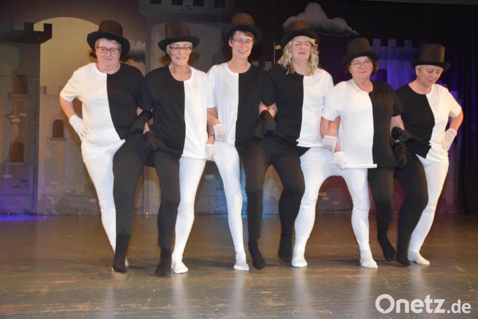 Dem folgte laut Hetz ein verwirrendes „schwarz-weißes Spektakel“ der sechs Damen beim etwas anderen Tanz, bevor dann Erika Neid und Sigrid Girisch durchs Fensterl zum Stadtplatz über Neustadt plauderten. Hierbei bekam jeder ein wenig sein Fett weg: Der Autofahrer, der zwei Parkplätze belegt, die Susi mit ihrem neuen Freund, die Zensi, die mit ihren High-Heels im Pflaster stecken bleibt oder aber der Bürgermeister, der mit roten Socken das Rathaus verlässt.