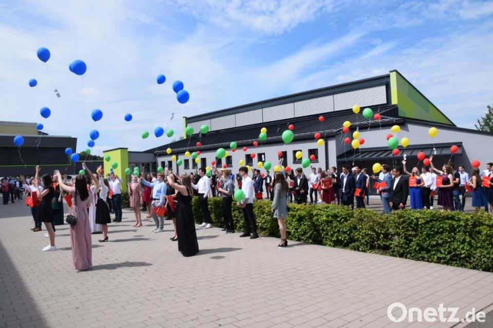 Das Lied "99 Luftballons" von Nena erklang aus den Lautsprechern auf dem Schulhof der Realschule, als sich die 95 Luftballons der Jugendlichen in die Luft erhoben und mit der Verabschiedung von der Realschule für die Jugendlichen zugleich der Blick auf einen neuen Lebenshorizont gelegt wurde. Es war eine logistische Meisterleistung, die das Kollegium um Realschuldirektorin Sebald meisterte. Vier Verabschiedungsorte gab es im Schulareal.