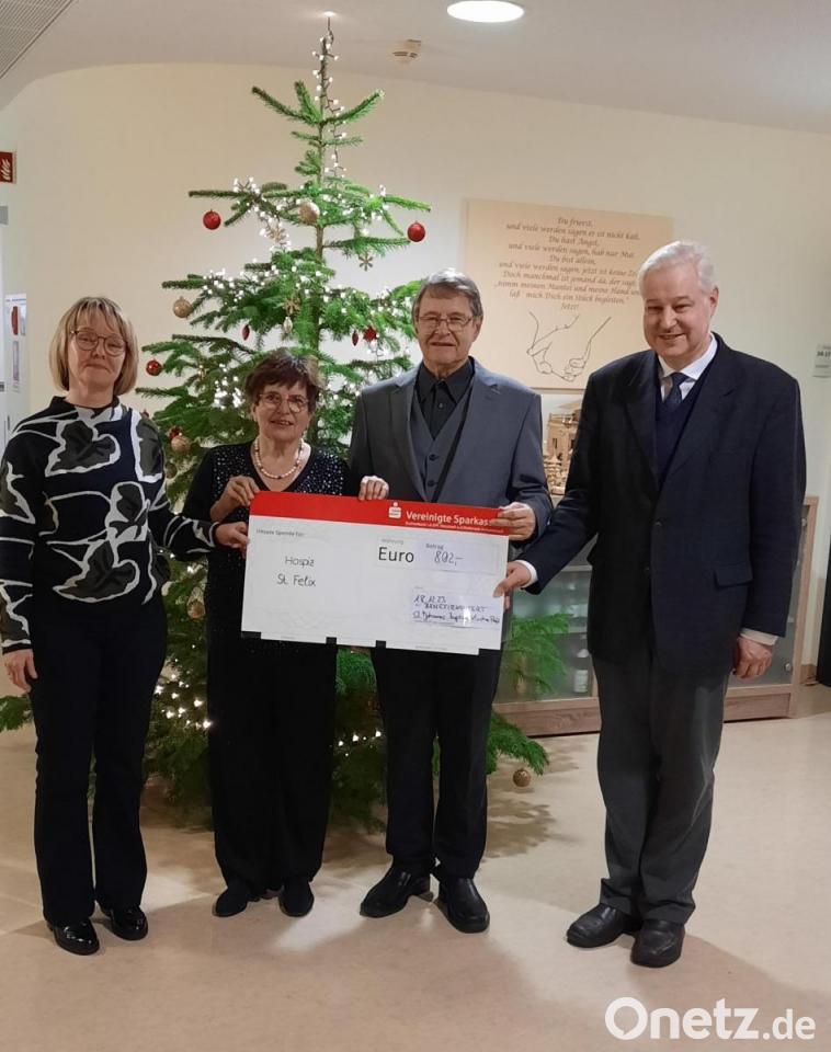 Susanne Wagner, die Leitung des Hospizes, freute sich besonders, da ihr die drei Musiker bei dieser Gelegenheit auch die Spende in der Höhe von 802 Euro aus ihrem Benefizkonzert vom Sonntag, 22. Oktober, in der St.-Johannes-Baptista-Kirche Floß überreichten. „Wenn Menschen im oder für das Hospiz musizieren, ist dies immer ein berührender Moment für mich. Die Gemeinsamkeit von Musik und der Arbeit im Hospiz ist, dass beides direkt ans Herz geht.“ Hildegard Zoltziar merkte an, „es tut auch mir gut, wenn ich für andere etwas Gutes getan habe“.