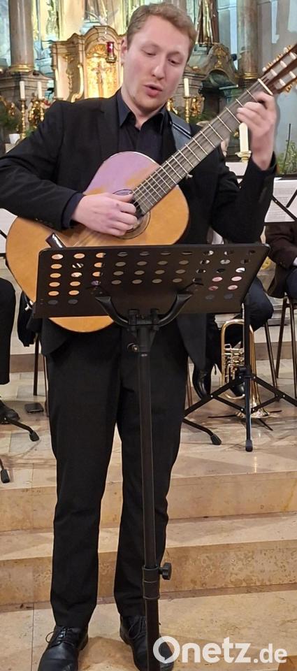 Mit kräftiger, sonorer Stimme begann der ehemalige Domspatz und Gitarren- und Gesangsstudent an der Musikhochschule in Stuttgart, Peter Ermer, mit dem schwedischen Weihnachtslied „Jul, jul, strålande jul“. Der Solist arbeitete die skandinavischen Klangfarben treffend heraus. Als zweites Vokalwerk trug der gebürtige Altenstädter das Kirchenlied „Adeste Fideles“ mit reiner Intonation vor. Beim Gospel „Go, Tell It On The Mountain“ ließen sich die Zuhörer nicht zweimal bitten und sangen sowie klatschten kräftig mit.