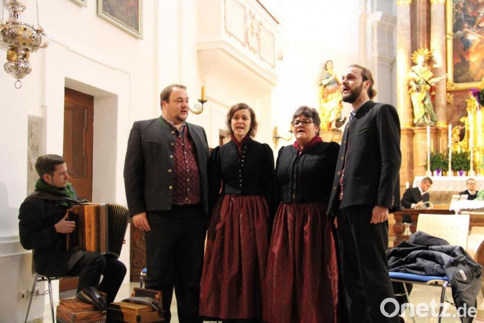 Nicht nur für Stadtpfarrer Thomas Kopp ist die Adventszeit etwas ganz besonderes. „Es ist die Zeit, innerlich zur Ruhe zu kommen, das äußere Tempo zu verlangsamen und dem Sinn dieser heiligen Zeit auf die Spur zu kommen“, stellte er bei der Begrüßung der Besucher fest. Als „volksmusikalisches Gustostückerl“ erwies sich der „Duschlhof G’sang“ aus der niederbayerischen Gemeinde Bayerbach. Der Viergesang aus dem Rottal zählt nicht umsonst zu den beliebtesten Volksmusikgruppen in Bayern. Mutter Barbara (Sopran) und ihre Kinder Elisabeth (Alt), Martin (Bass) und Johannes (Tenor) glänzten mit perfekt aufeinander eingestellten Stimmen und folgten in ihren Liedern einem Stern, lobten Maria oder suchten im Schnee „a Wegal zu dir“.