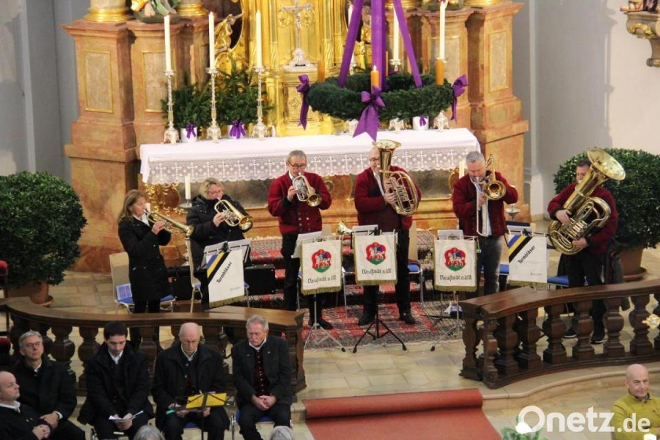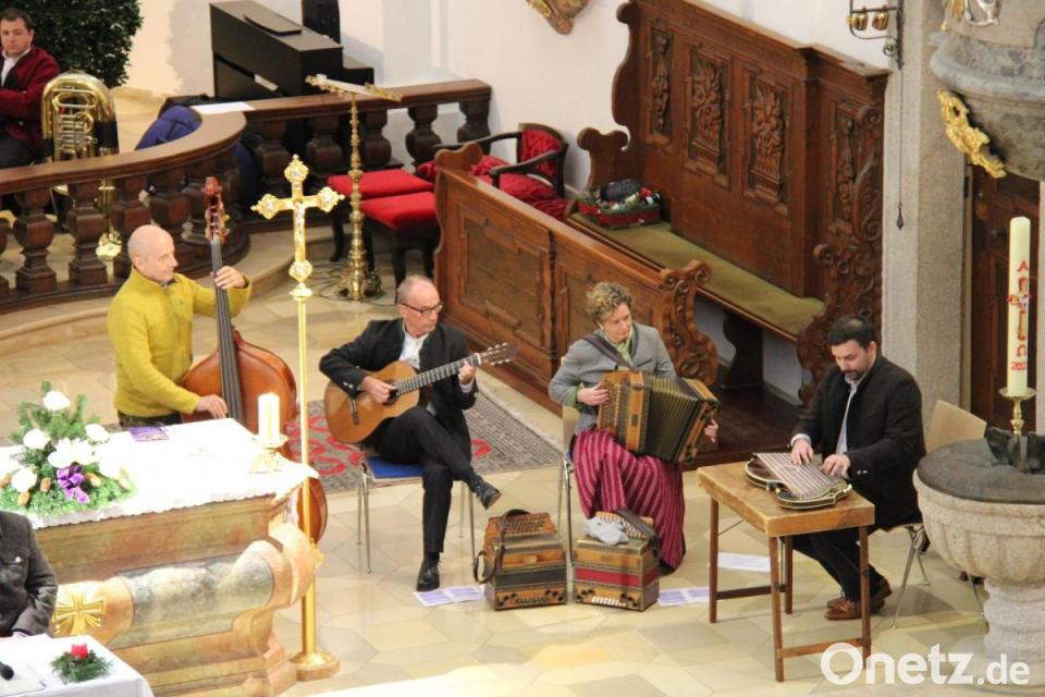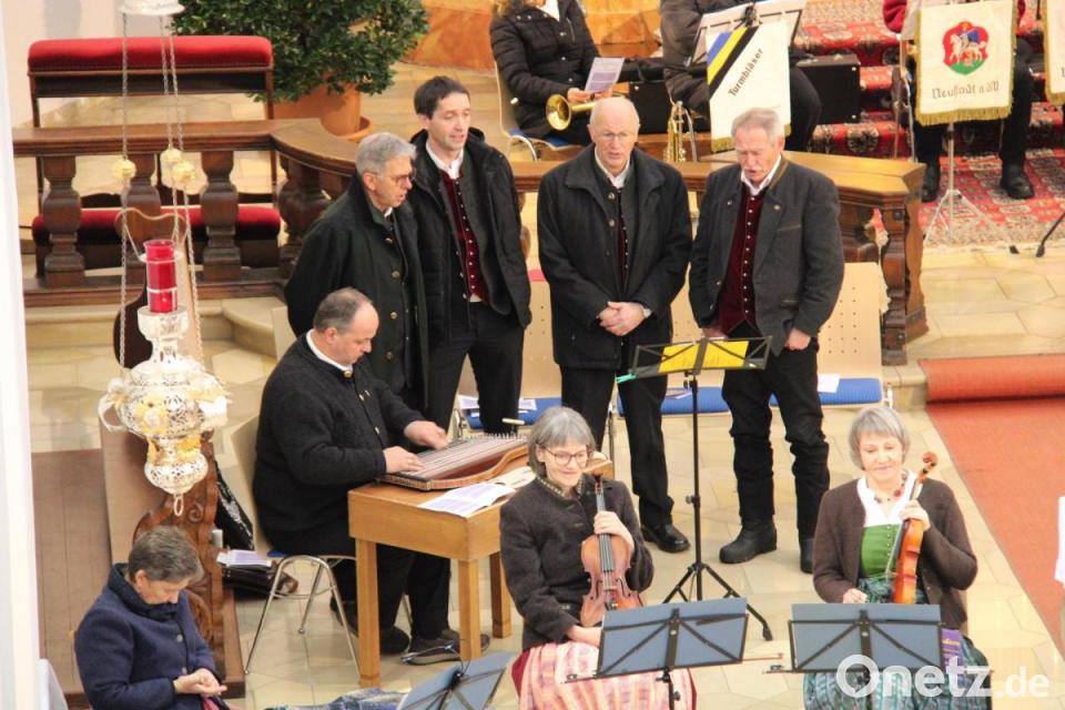 Die "Neustädter Turmbläser" mit Angela und Werner Schramek, Christine Fischer (alle Flügelhorn), Michael Erfurt (Tenorhorn), Harald Faltenbacher (Posaune) und Gerald Bayerl (Tuba) nutzten mit ihren festlichen Chorälen und dem Klangvolumen ihrer Instrumente die gute Akustik der Kirche und präsentierten sich als fulminanter Klangkörper. Die „Lamer Winkel Sänger“, eine der bekanntesten Volksmusikgruppen aus dem Bayerischen Wald, besetzt mit den beneidenswerten Stimmen von Hans Eckl, Klaus Huber, Otto Vogl und Hermann Koller, präsentierten sich als wunderbar klingende vierstimmige Einheit.