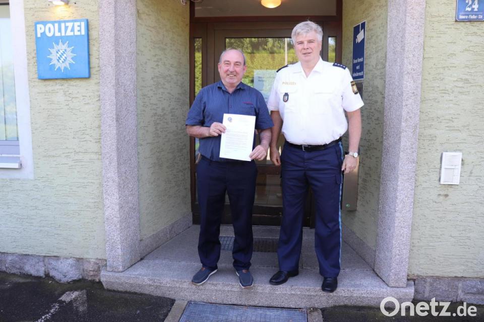 Einen besonderen Termin durfte der stellvertretende Leiter der Polizeiinspektion Neustadt, Polizeihauptkommissar Georg Fritsch, wahrnehmen. Im Namen des Polizeipräsidiums überreichte er ein Dankschreiben und eine kleine finanzielle Aufmerksamkeit an einen aufmerksamen Zeugen. Johann Kett aus Theisseil war im November 2019 ein weißer Mercedes Sprinter mit einem Weidener Kennzeichen aufgefallen. Das Fahrzeug war mit mehreren Personen besetzt und erweckte zunächst den Eindruck, dass die Insassen auf etwas warteten.