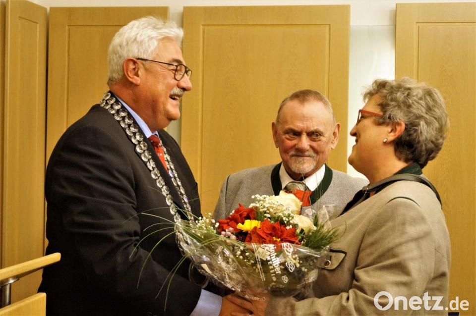 Vor der 750-Jahr-Feier wurde die Bürgerwehr gegründet. Eine weitere Leidenschaft war der Gesang. Völkl gehört heute noch zum Sängerbund. Er gründete den Waldhauser Viergesang mit und diese „Boygroup“, wie Troppmann sie bei einem Fernsehauftritt vor 15 Jahre genannt hatte, besteht heute noch. Beim OWV war Völkl jahrelang zuständig für das Markieren der Wanderwege. Außerdem ist der Geehrte der Stadtbäcker. Einmal monatlich übt er diese alte Tradition des Brotbacken aus. Troppmann verlieh Völkl auf einstimmigen Beschluss des Stadtrats vom 9. Oktober die Bürgermedaille und überreichte an dessen Frau Sonja einen Blumenstrauß.