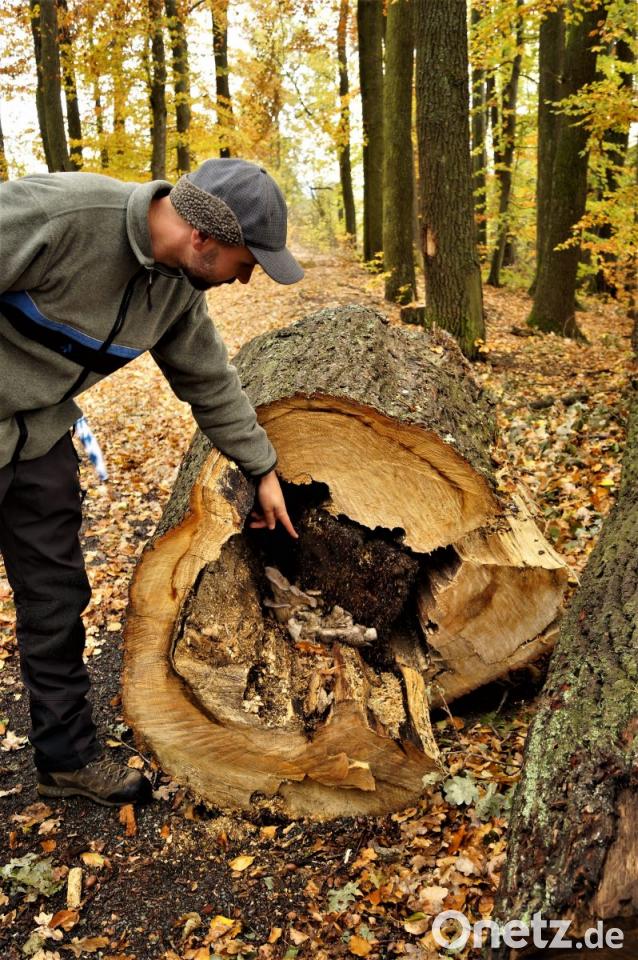 Dass selbst eine mächtige Eiche falle, wurde klar, als die Räte den vor Baumstumpf betrachteten. Mit einem Durchmesser von gut einem Meter ist das Innere schon ganz schön morsch. Der Baum wird nun weiter in den Wald gerollt und gehört den Insekten. Bis die Aufräumarbeiten erledigt waren, musste das betroffene Waldgebiet für mehrere Wochen aus Sicherheitsgründen gesperrt werden.